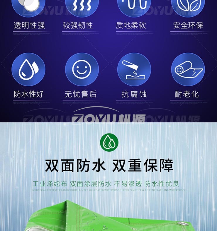 PVC涂塑布主要成份為聚氯乙烯,PVC篷布加工在制造過程中增加了增塑劑、抗老化劑等一些輔助材料來增強(qiáng)其耐熱性,韌性,延展性等,表面涂敷糊狀樹脂配加增速劑、防霉劑、防老化劑、劑等多種化學(xué)助劑,具有不性、高強(qiáng)度、耐氣侯變化性以及優(yōu)良的幾何穩(wěn)定性而且還具有防水、防霉、耐磨、耐用、耐寒、耐老化、等天性機(jī)能。